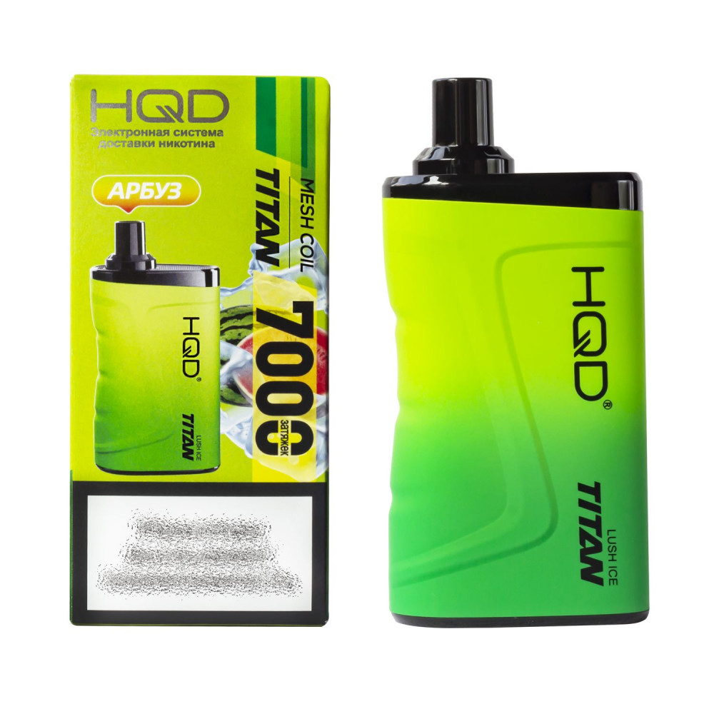 | HQD видыTitan (Титан) | HQD вкусыАрбуз | HQD количество в блоке5 шт |
